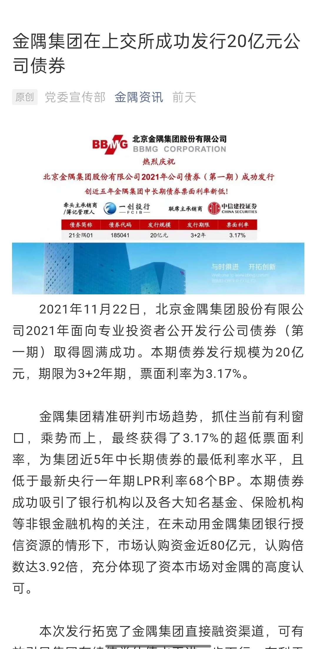 在金隅股份的最新公告中,您不僅能感受到我們的成就,還能感受到團隊積極向上的精神面貌,那種永不言敗的精神和充滿正能量的氛圍讓我們深受感染,這種正能量讓我們在工作中充滿激情,在生活中充滿陽光,傳遞給每一個人。